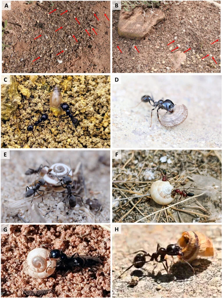 Ejemplos de interacciones de hormigas con caracoles en Robla et al. (2025).